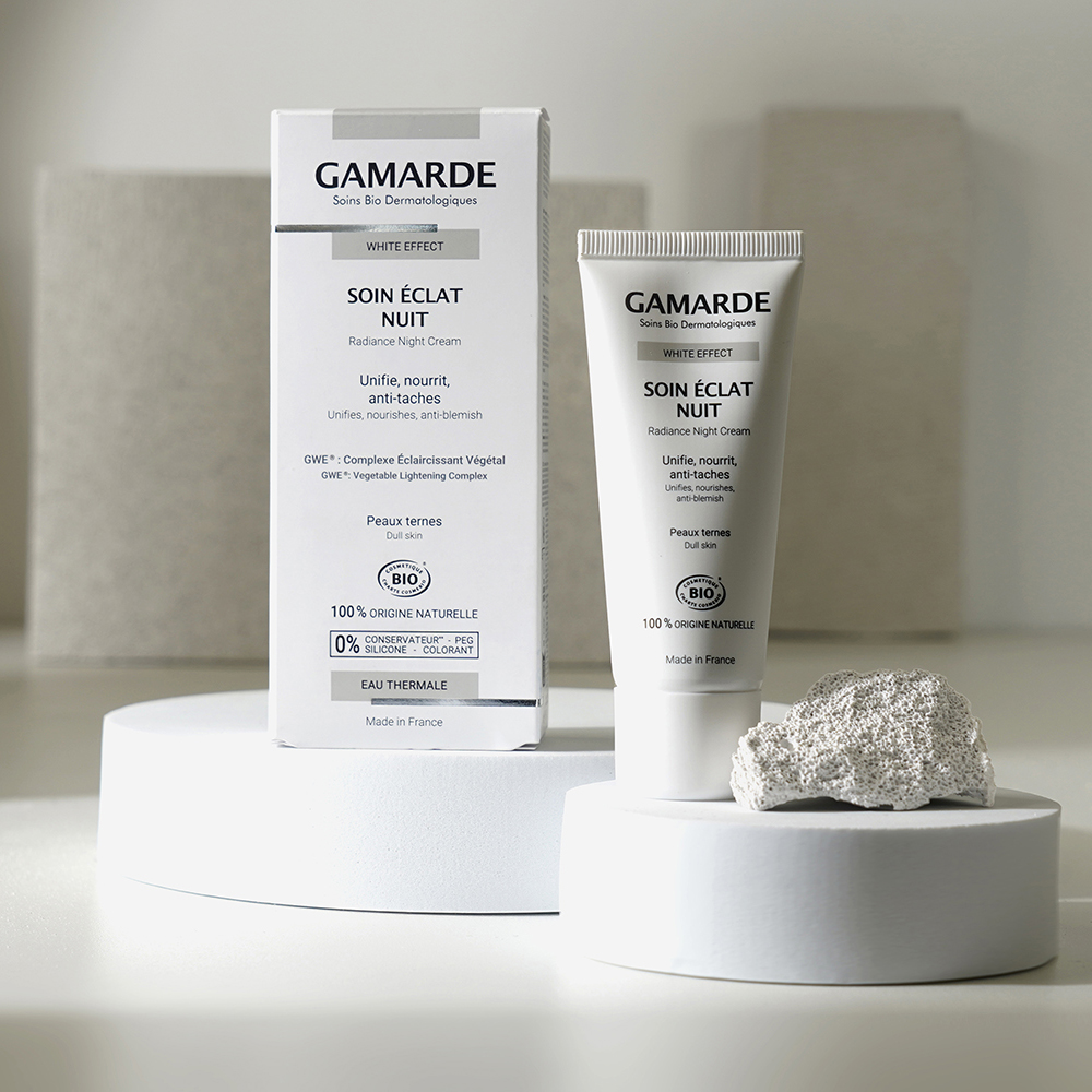 Au complexe éclaircissant GWE® d'origine végétaleCe soin nuit est idéal pour raviver l’éclat des peaux ternes et/ou à taches brunes (imperfections pigmentaires). Sa formule contient le complexe éclaircissant GWE® certifié bio, qui diminue la production de mélanine responsable des taches. Votre peau est éclatante, vos taches estompées, votre teint unifié. Formulation Vegan